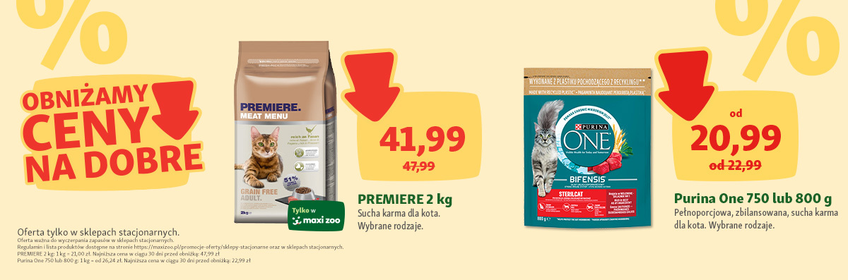 - Obniżamy ceny na dobre! Szukaj w naszych sklepach specjalnych oznaczeń i produktów w atrakcyjnych cenach! Szczegóły akcji u pracowników sklepu oraz na www.maxizoo.pl