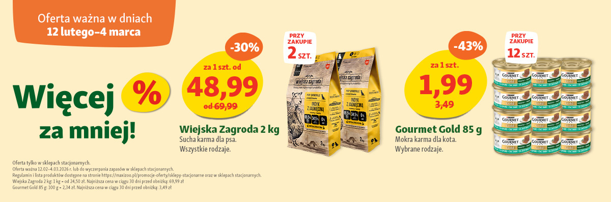 - Więcej za mniej! Kupuj wielosztuki z korzystnym rabatem! Szczegóły akcji u pracowników sklepu oraz na www.maxizoo.pl