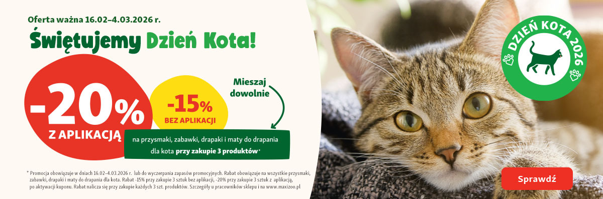 • Regulamin wprowadzania zwierząt do sklepów Maxi Zoo dostępny jest tutaj.